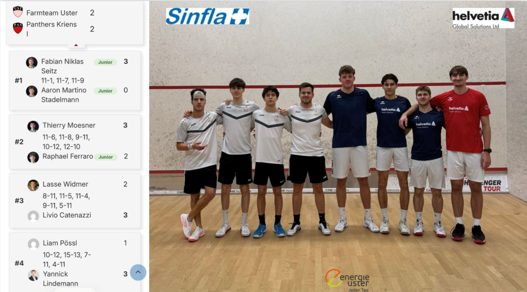 Das Juniorenteam verpasst einen Sieg gegen Panthers Kriens nur knapp. Fabian Seitz zeigte eine souveräne Leistung und gewinnt sein Match deutlich mit 3:0. Mit präzisem Spiel und hoher Konzentration lässt er seinem Gegner keine Chance. Lasse Widmer muss sich trotz einer starken Vorstellung knapp mit 2:3 geschlagen geben. Sein Kampfgeist ist hervorragend. Liam Pössl verliert sein Match mit 1:3, hält jedoch über weite Strecken gut mit und verpasst nur knapp den möglichen fünften Satz. Die Partie war enger als das Resultat vermuten lässt. Thierry Mösner liefert ein spannendes und hart umkämpftes Match ab und gewinnt schließlich knapp mit 3:2. Sein Durchhaltevermögen im Entscheidungssatz war entscheidend und rettet das Unentschieden. Mit etwas mehr Erfahrung ist hier ein Sieg drin.